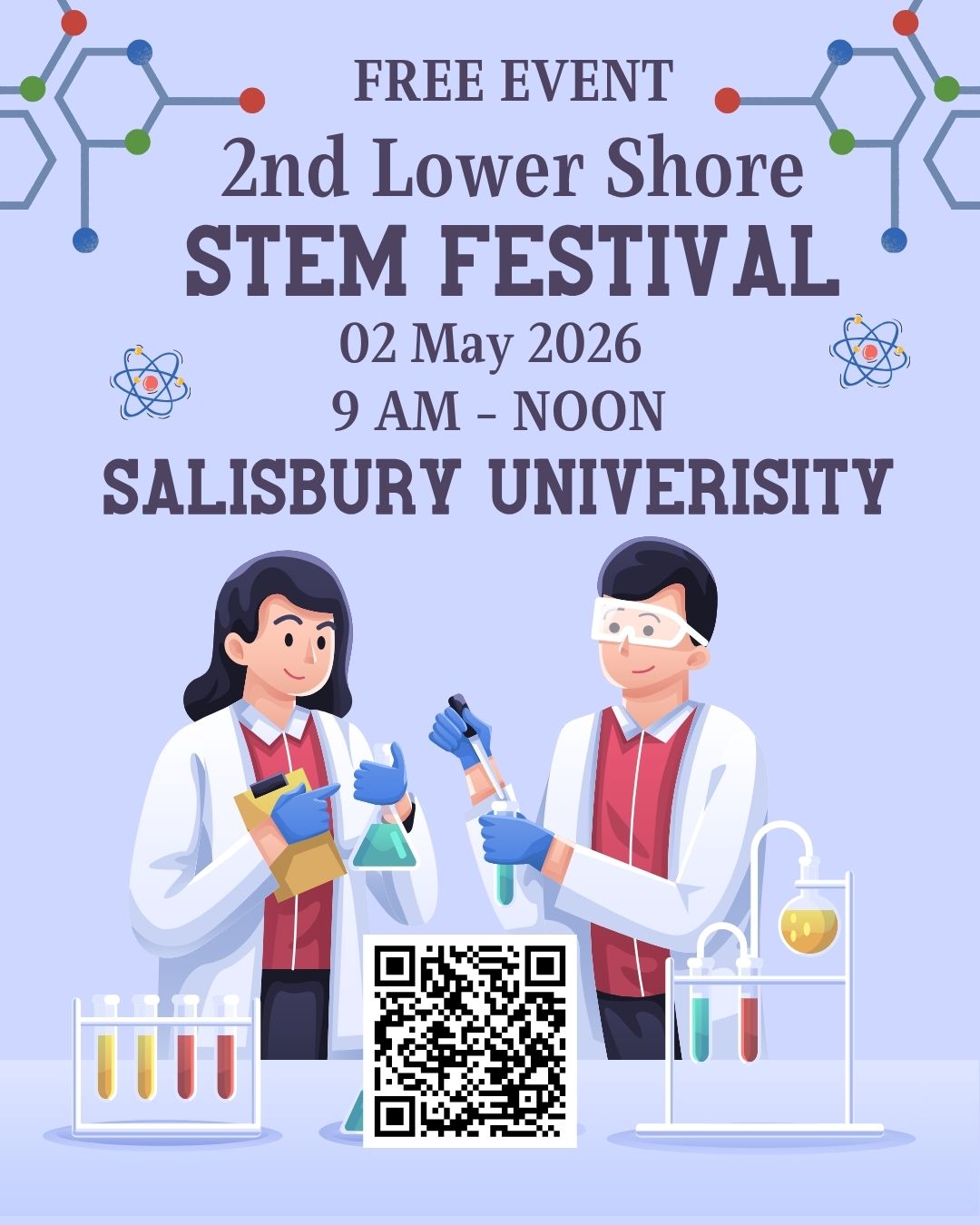 The 1st Lower Shore STEM Festival was a major success. The 2nd is being held on May 2, from 9am to 12pm. Join for a morning of discovery and innovation at the 1st Lower Shore STEM Festiva at Salisbury University. This free event is open to all ages. It offers a unique opportunity to explore the wonders of Science, Technology, Engineering, and Mathematics (STEM) through a variety of hands-on activities and engaging exhibits.