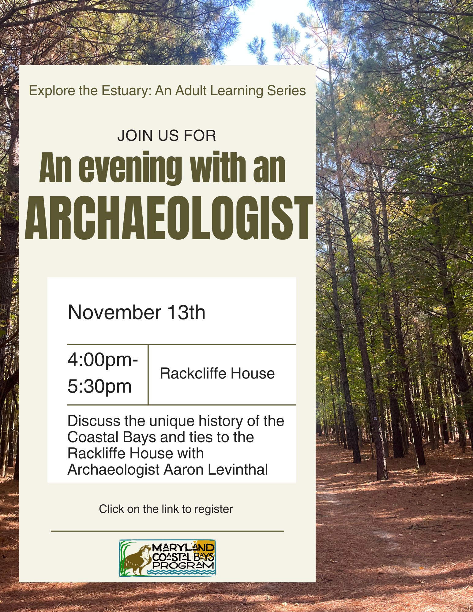 Please join MCBP for an evening at the Rackliffe House with archeologist Aaron Levinthal as you take a dive into the archeological history surrounding the Coastal Bays region and what he has unsurfaced about the culture of food in this region. Capacity 20 participants.