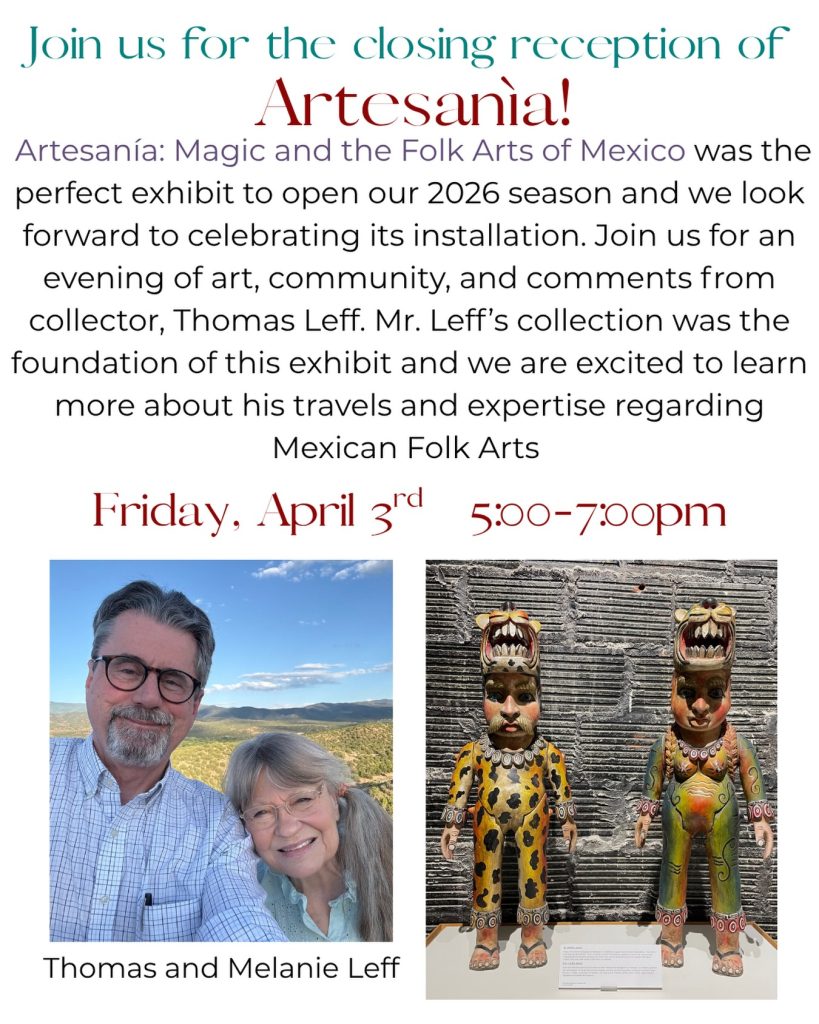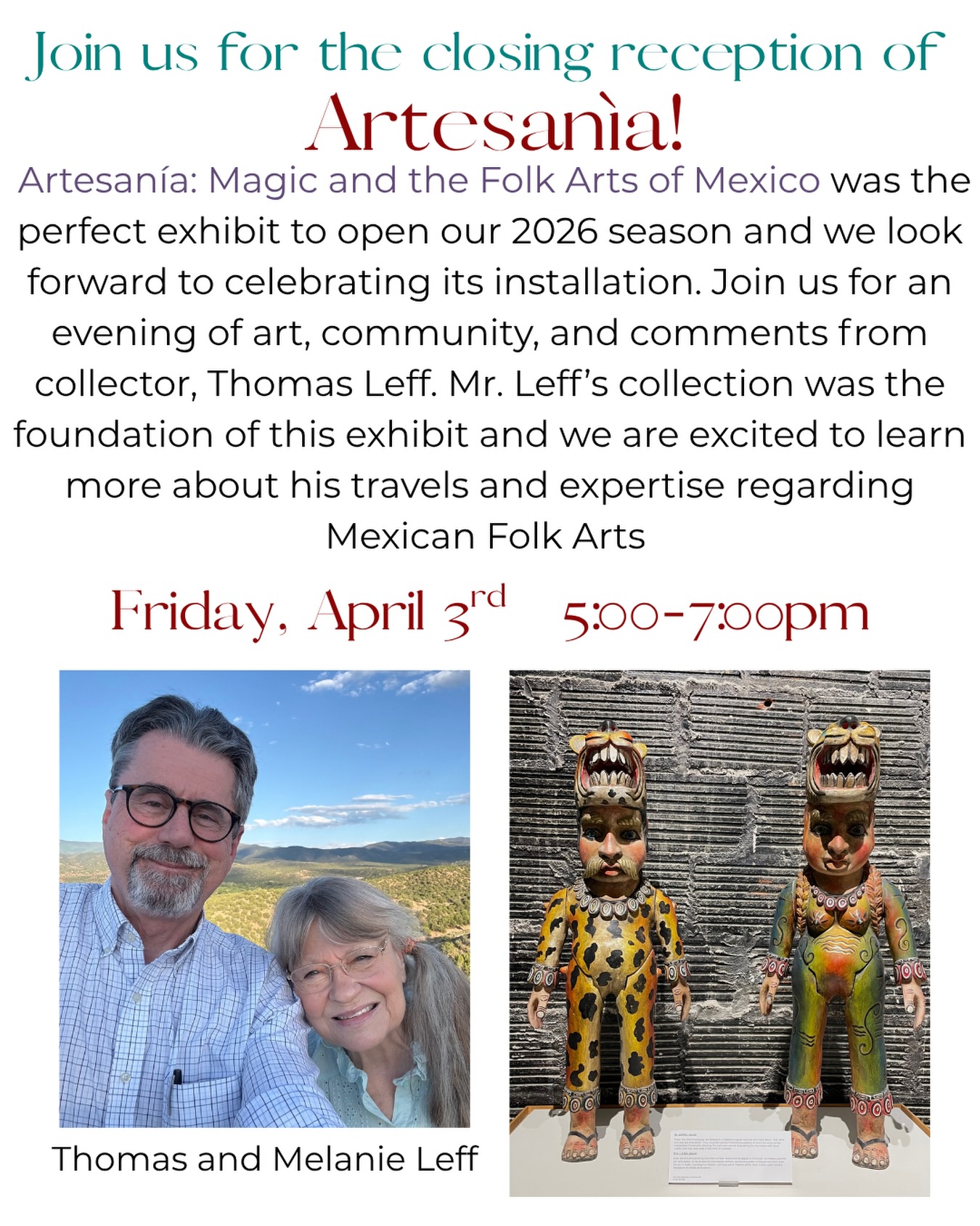 Join the Museum of Eastern Shore Culture for an evening of art, community, and comments from collector, Thomas Leff. Mr. Leff’s collection was the foundation of this exhibit and we are excited to learn more about his travels and expertise regarding Mexican Folk Arts.