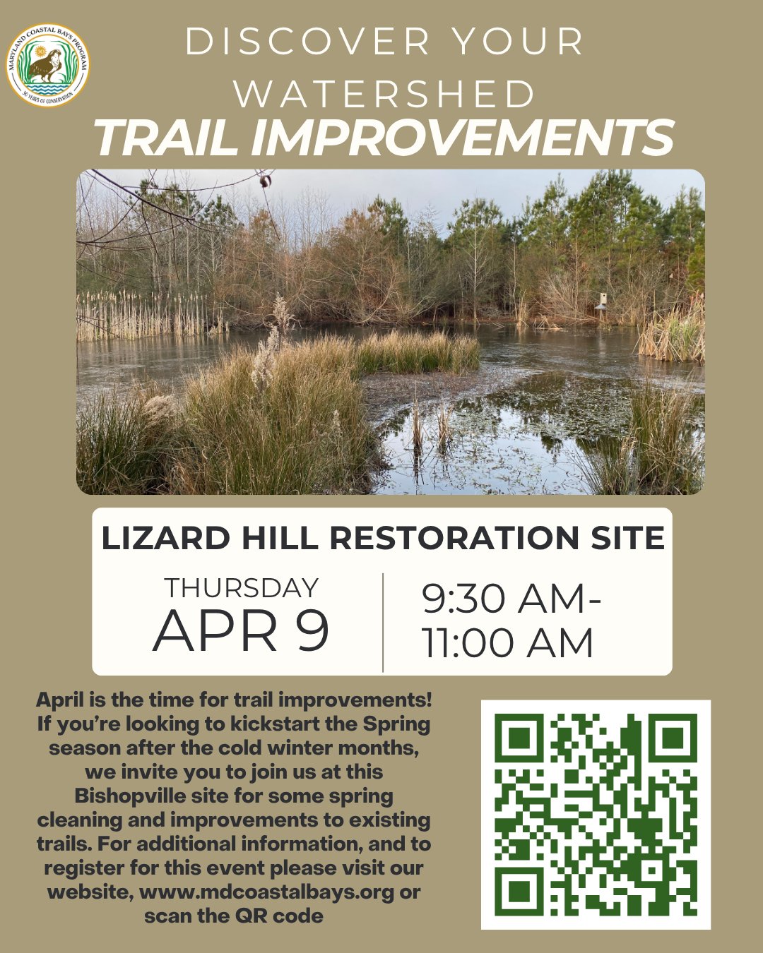 If you enjoy the satisfaction of accomplishing yard work in early Spring, MCBP invites you to help improve some of the existing trails at this Bishopville restoration site. Further details and registration coming soon.