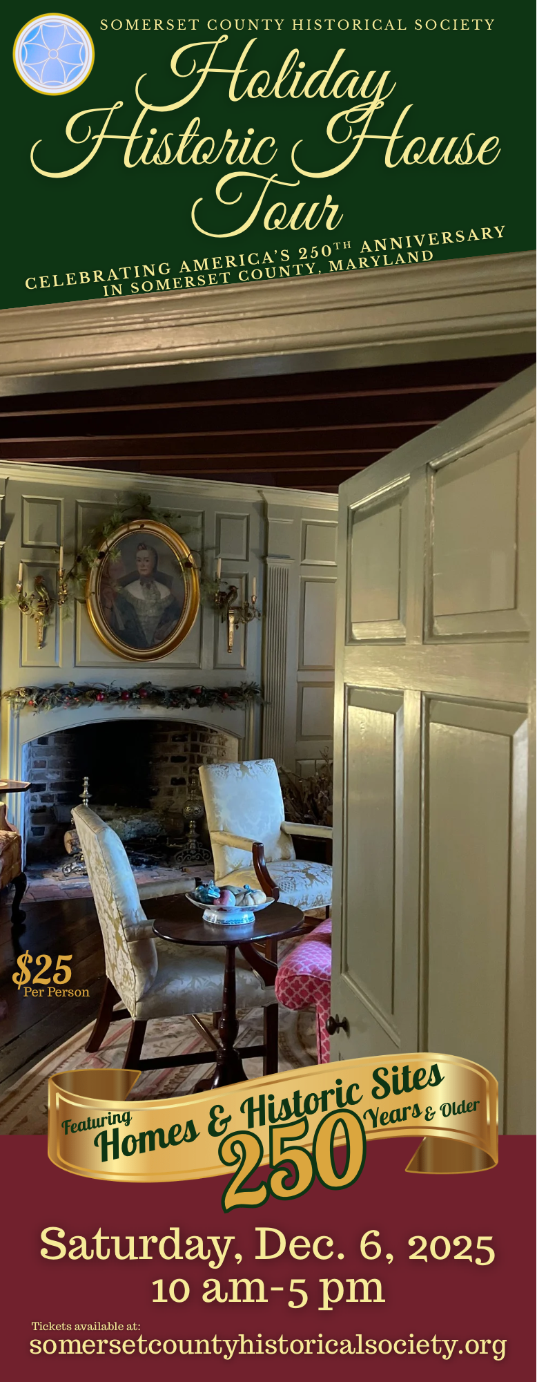 Enjoy a Holiday Tour of historic homes, churches & public sites in Somerset County, MD.