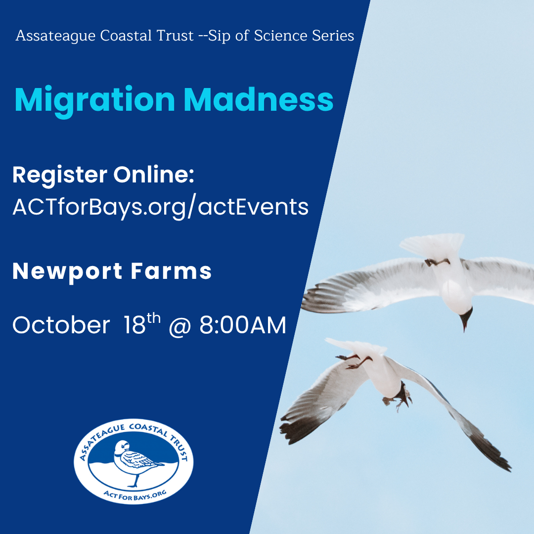 Join us for a guided Avian Adventure at Newport Farms led by ACT’s Executive Director & Assateague Coastkeeper, Taylor Swanson. Taylor is a life-long expert birder who will guide us and explore the wonder of Migration Madness! Witness firsthand how migratory birds rely on the Eastern Shore as a critical stopover on their long journeys—and learn why protecting these habitats is vital to their survival.