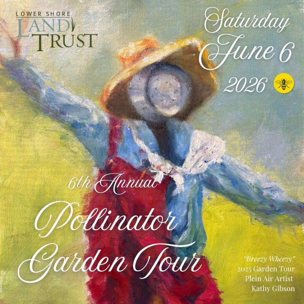 The tour is a fundraiser for the Lower Shore Land Trust which highlights beautiful gardens in a particular area each year. Attendees purchase tickets which provide them a map to visit various private gardens, talk with garden owners, share tips and get inspired! A plein air artist at each location sets up a canvas and creates artwork unique to each host’s garden environment. It’s a beautiful way to spend a summer day, for attendees and garden hosts alike, meeting new people and sharing common interests in native gardening and pollinator habitat. Tickets: Adults $30 in advance, $35 at the door; Children 12 yrs. and under $10 in advance and at the door (includes Children’s Pollinator Activity).